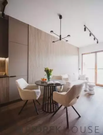 Eleganckie, pełne światła mieszkanie wykończone wysokogatunkowymi materiałami . Funkcjonalny układ architektoniczny dzieli wyraź...