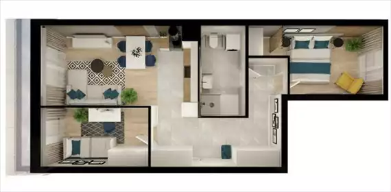 Oferujemy do sprzedaży mieszkanie o pow. 56,14 m2Lokal składa się z-salonu połączonego z kuchnią,-2 sypialni-łazienki z wc.-doda...