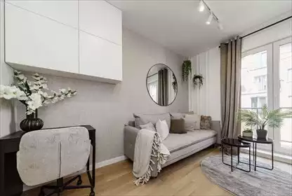 Apartament o powierzchni 38,3 m2 w reprezentacyjnym budynku z portiernią na Stegnach. Składa się z salonu z aneksem kuchennym i ...