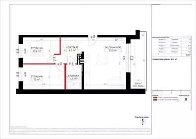 | Mieszkanie trzypokojowe o powierzchni 57,20m2 usytuowane na ostatniej kondygnacji budynku wielorodzinnego przy ulicy Marszałk...
