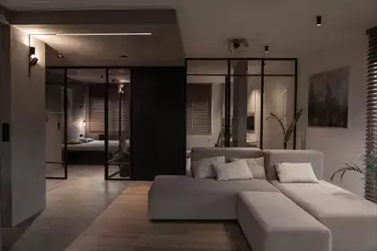 3-pokojowe mieszkanie na parterze z ogródkiem 32 m2 (nr 2A). Ścianka wydzielająca trzeci pokój (z pełnowymiarowym oknem balkonow...