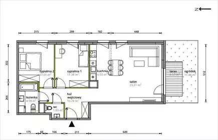 SZCZEGÓŁY MIESZKANIA (0 % prowizji) Oddane do użytku Liczba pokoi: 2 Piętro : 0 salon z aneksem kuchennym (możliwość wydzi...