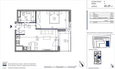Na sprzedaż 2-pokojowe mieszkanie o powierzchni 45,59 m2 oferowane w ramach nowoczesnej inwestycji deweloperskiej.Inwestycj...