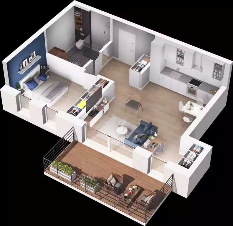 Dwupokojowe mieszkanie o powierzchni 50,65 m² z balkonem. Położone na pierwszym piętrze z ekspozycją południową w nowoczesnej cz...