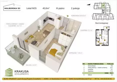 Biuro sprzedaży nowej inwestycji pod nazwą Malborska 151 ma zaszczyt przedstawić komfortowe mieszkanie na sprzedaż, zlokalizowan...