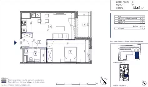 Na sprzedaż 2-pokojowe mieszkanie o powierzchni 45,61 m2 oferowane w ramach nowoczesnej inwestycji deweloperskiej.Inwestycja zlo...