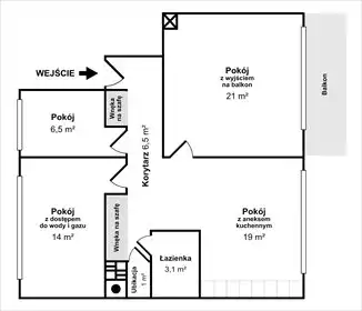 | Przestronne trzy pokoje z oddzielną kuchnią. Układ pomieszczeń - trzy ustawne pokoje w amfiladzie. Wejście do dwóch z nich ze ...