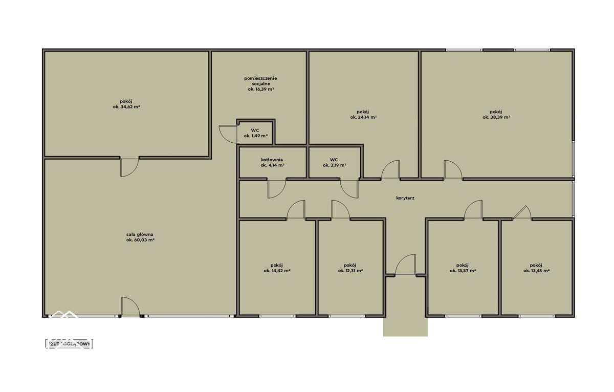 7 pokoi biurowych - 34,62 m², 24,14 m², 38,39 m², 14,42 m², 12,31 m², 13,37 m², 13,45 m²