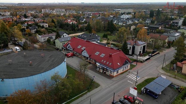 Budynek handlowo-usługowo-biurowy bezpośrednio przy drodze.