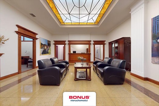 Pierwsza część o powierzchni 240 m² jest kompletnie wykończona w bardzo wysokim standardzie, z wnętrzami utrzymanymi w stylowym, eleganckim charakterze. W jej skład wchodzi przestronny i reprezentacyjny hol, który stanowi doskonałe pierwsze wrażenie dla klientów oraz wizytówkę lokalu. Dalej znajduje się pięć okazałych, reprezentacyjnych gabinetów, zaprojektowanych z dbałością o detale i komfort pracy. Wydzielono również część socjalną, obejmującą toaletę oraz w pełni wyposażoną kuchnię, co zapewnia wygodę codziennego użytkowania. Ta część lokalu jest gotowa do natychmiastowego wprowadzenia i doskonale nadaje się na kancelarię notarialną, adwokacką, biuro doradcze, gabinety lekarskie lub prestiżową siedzibę firmy.