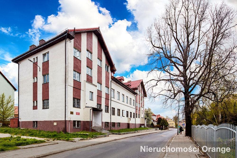 Budynek z magazynem i dużym parkingiem przy Rynku.