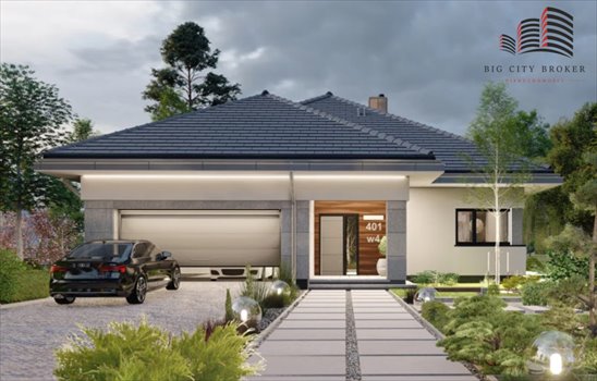 Na sprzedaż funkcjonalny, nowoczesny dom parterowy wg projektu APS 401 - idealny dla rodziny, osób ceniących wygodę życia bez schodów oraz czytelny podział na strefę dzienną i prywatną.