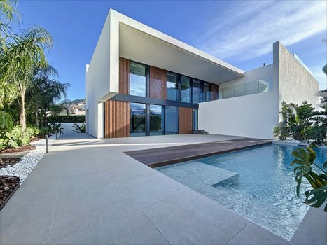 EKSKLUZYWNA NOWOCZESNA WILLA NA SPRZEDAŻ W EL ALBIR, GOTOWA DO ZAMIESZKANIA. Ta ekskluzywna nowoczesna willa w Playa de Albir, Alfàs del Pi, Costa Blanca, to nowo wybudowany dom, który łączy w sobie luksus, komfort i bezkonkurencyjną lokalizację, zaledwie 15 minut spacerem od plaży. Nieruchomość ma powierzchnię zabudowy 339 m² na działce o powierzchni 480 m², ze śródziemnomorskim ogrodem i prywatnym basenem. Na parterze znajduje się otwarta przestrzeń, która łączy salon, jadalnię i kuchnię z dużymi oknami i podwójną wysokością, która wypełnia cały dom naturalnym światłem, łącząc wnętrza z zewnętrzem poprzez wewnętrzne patia, a także garaż z bezpośrednim dostępem do domu. Na pierwszym piętrze znajdują się 3 sypialnie z łazienkami z dostępem do prywatnego tarasu i spektakularnego solarium z widokiem na Puig Campana, Sierra Bernia i Sierra Helada. Podpiwniczenie oferuje 90 m² powierzchni, którą można dostosować do siłowni, pokoju gier lub większej liczby sypialni. Wśród wyjątkowych funkcji znajdują się ogrzewanie podłogowe, klimatyzacja aerotermalna, system automatyki domowej i alarm (kamery), a także najwyższej jakości wykończenia. Ta willa oferuje uprzywilejowane środowisko z nowoczesnym designem i wszystkimi niezbędnymi udogodnieniami dla maksymalnego komfortu. Skontaktuj się z nami, aby uzyskać więcej informacji lub umówić się na oglądanie i odkryj swój nowy dom!