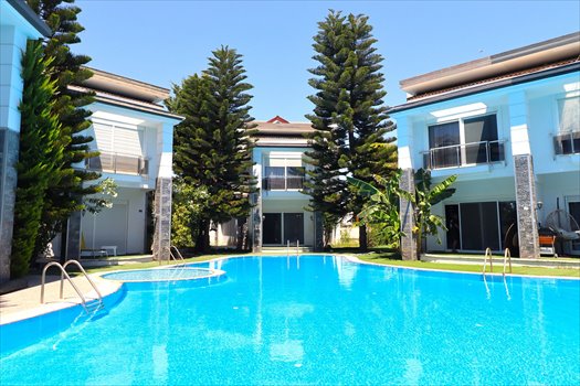 Willa na sprzedaż w Güzeloba została wybudowana na działce o powierzchni 3582 m². Kompleks willowy składa się z 8 bloków i oferuje wspólny basen, wspólny ogród oraz prywatny zewnętrzny parking.