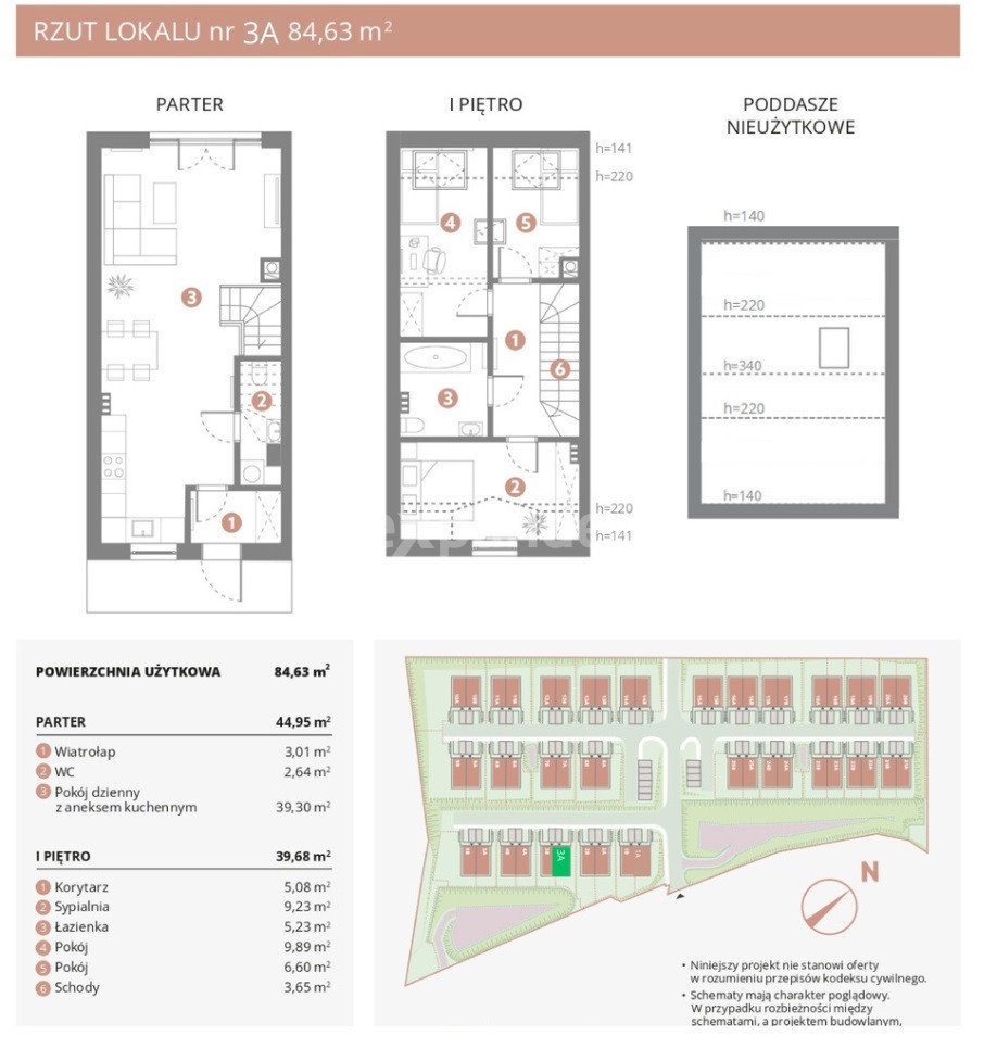 • dodatkowo poddasze nieużytkowe o pow. około 29m2