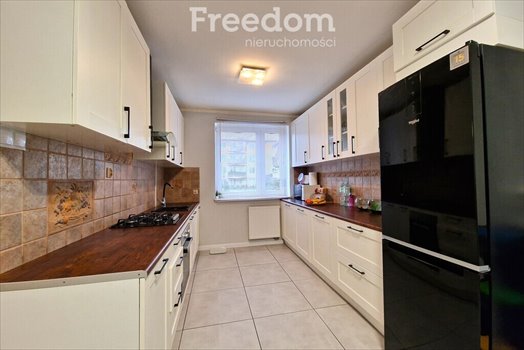 W kuchni nowe meble w zabudowie, a w nich funkcjonalne rozwiązania, wygodne szuflady oraz wszystkie niezbędne sprzęty AGD, zmywarka, lodówka, płyta gazowa, piekarnik.