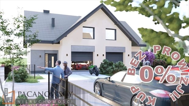 Dom z przynależnymi: balkonem, garażem ulokowanym w bryle budynku oraz dwoma miejscami postojowymi, wpisujący się w najnowsze trendy budownictwa. Dojazd drogą powiatową, następnie drogą prywatną utwardzoną.