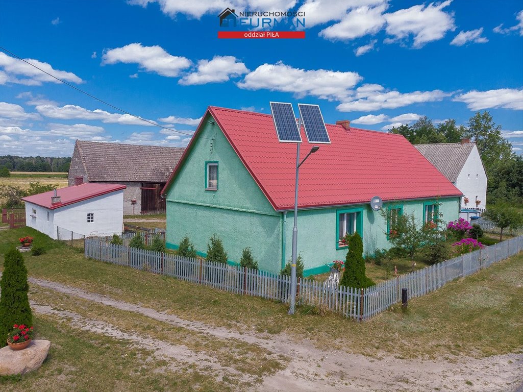 Dom o pow. użytkowej ok. 116m2. Wybudowany metodą tradycyjną, murowany (ściany zewnętrzne gliniane, wewnętrzne cegła) ocieplony. Dach konstrukcji drewnianej kryty blachodachówką. Stolarka okienna PCV. Na podłodze panele oraz terakota.