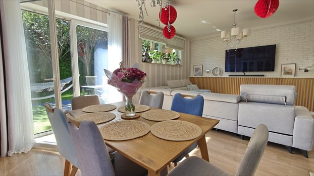 Ogród jest duży, pięknie zaaranżowany, zadbany i pomimo zabudowy bliźniaczej zapewnia pełny komfort. Unikalne zamknięte osiedle, oświetlone, z bramą wjazdową. Jest to idealne miejsce do wychowywania dzieci oraz regeneracji po pracy.