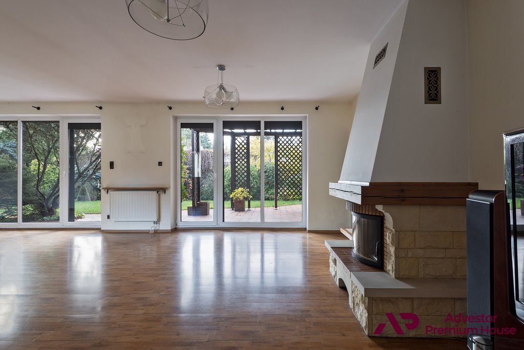 - przestronny salon z kominkiem i wyjściem na taras oraz ogród