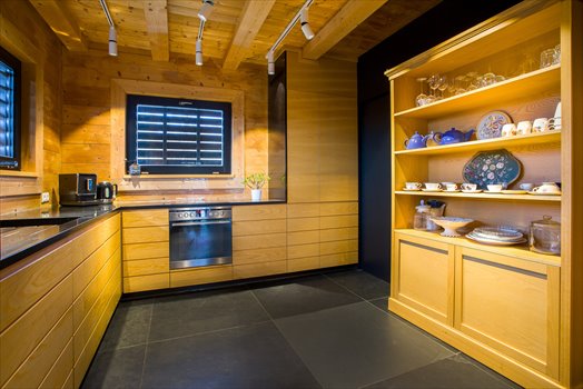 - Kuchnia z przylegającą spiżarnią, wyposażona w lodówkę, zamrażarkę, zmywarkę, piec i kuchenkę elektryczną.