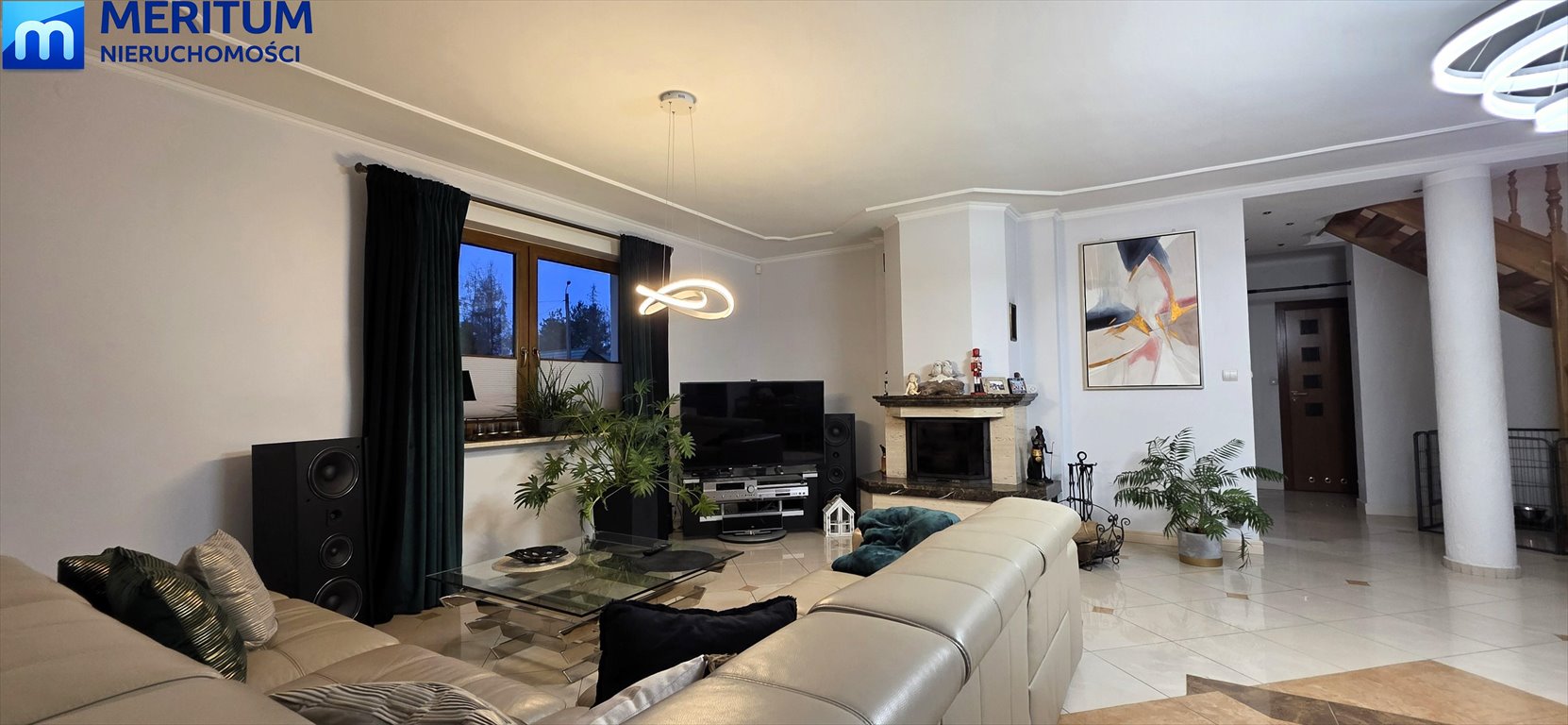- duży, przestronny i doskonale doświetlony salon o powierzchni 48 m, wyposażony w marmurowy kominek; okna na trzy strony świata oraz bezpośrednie wyjście na taras
