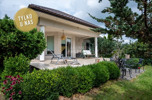 Dom został wykończony z niebywałą starannością, przy użyciu materiałów wysokiej jakości. Pomieszczenia utrzymane są w jasnej kolorystyce. Uwagę przykuwają liczne drewniane elementy, które ocieplają wnętrze. Duże okna wspaniale doświetlają każde pomieszczenie oraz umożliwiają bezpośredni kontakt z pięknie zagospodarowanym ogrodem oraz wyjątkowym tarasem, który znajduje się przy samym wejściu do salonu.