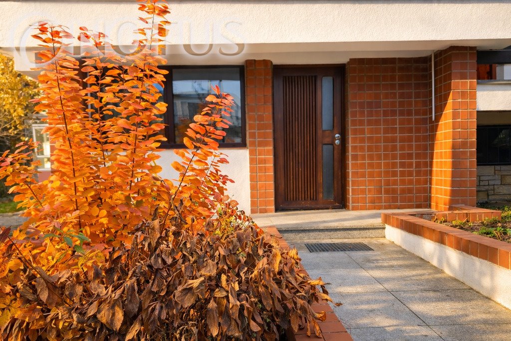 Budynek wolnostojący, dwupoziomowy, podpiwniczony, wybudowany na działce o łącznej powierzchni 959m2 z dostępem do drogi publicznej. Fundamenty z betonu wylewanego. Ściany piwnic z cegły ceramicznej pełnej. Ściany zewnętrzne kondygnacji naziemnej z bloczków z gazobetonu. Elewacja - tynk + płyty piaskowca + cegła klinkierowa. Podłogi pomieszczeń wykonane częściowo z drewna - parkiet dębowy, częściowo granitowe, w sali kominkowej podłoga marmurowa. Pomieszczenia z dużą ilością naturalnego światła. Drzwi wejściowe drewniane. Budynek jest z 3 stron otoczony tarasami o różnych powierzchniach. Budynek posiada wszystkie instalacje tj. elektryczną, wodociągową, gazową, kanalizacyjną, alarmową i odgromową. Ogrzewane gazowe - nowy piec Buderus. Stan techniczny budynku jest bardzo dobry.