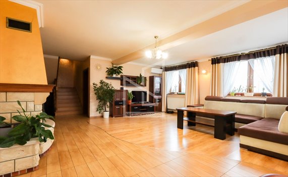 Dom o powierzchni 288 m² składa się z czterech przestronnych sypialni oraz dwóch nowoczesnych łazienek, co sprawia, że jest idealnym miejscem dla rodzin. Jego standard wykończenia oraz dobrze rozplanowane wnętrza zapewniają komfort codziennego życia. Dodatkowo, w piwnicy znajduje się sauna oraz stół bilardowy, które umilą czas spędzany w gronie rodziny i przyjaciół.