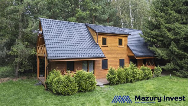 Dom o konstrukcji drewnianej wybudowany został w 2018 roku. Jest to budynek parterowy z poddaszem użytkowym, w zabudowie bliźniaczej. Sprzedawana jest całość nieruchomości, w której wydzielono dwa niezależne mieszkania rekreacyjne. Dach pokryty jest blachodachówką, a stolarka okienna PCV.