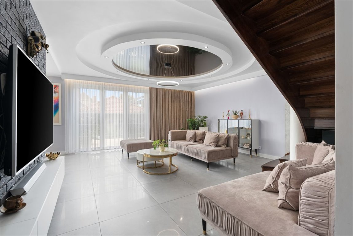 - salon z wyjściem na duży taras i ogród