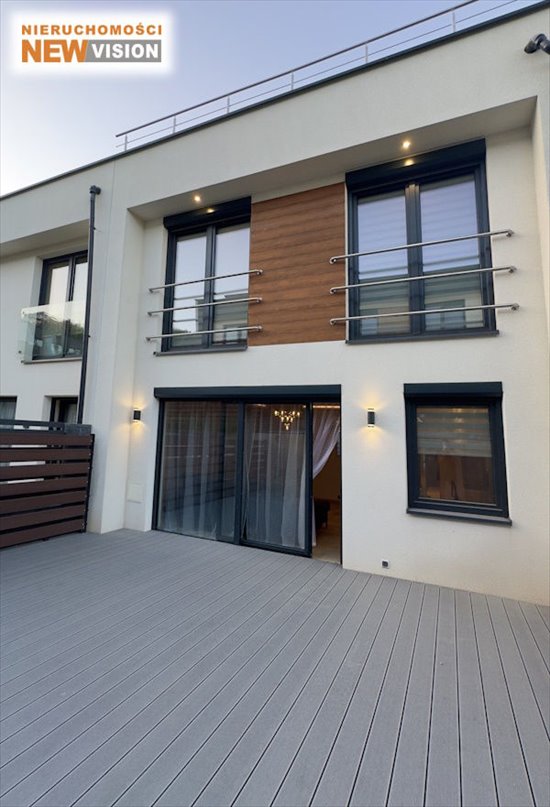 Na piętrze czekają trzy komfortowe sypialnie oraz duża, stylowa łazienka z WC. W łazience zastosowano piękne kafle o strukturze marmuru, podkreślając luksusowy charakter tego miejsca. Do dyspozycji jest wanna wolnostojąca, kabina prysznicowa, dwie umywalki oraz muszla podwieszana z bidetem. Dodatkowo, na tym poziomie znajduje się pralnia z suszarnią - w cenie nowa pralka i suszarka. Niezapomnianym atutem jest duży taras na dachu, idealny na letnie spotkania i relaks na świeżym powietrzu. Dach jest podwójnie izolowany, z odpływami. Drzwi wewnętrzne wysokiej klasy z firmy DRE. Dla większego komfortu mieszkańców zainstalowano w każdym pokoju klimatyzację, kamery ( 4 wewnętrzne i 4 zewnętrzne), zamontowany światłowód, żaluzje antywłamaniowe