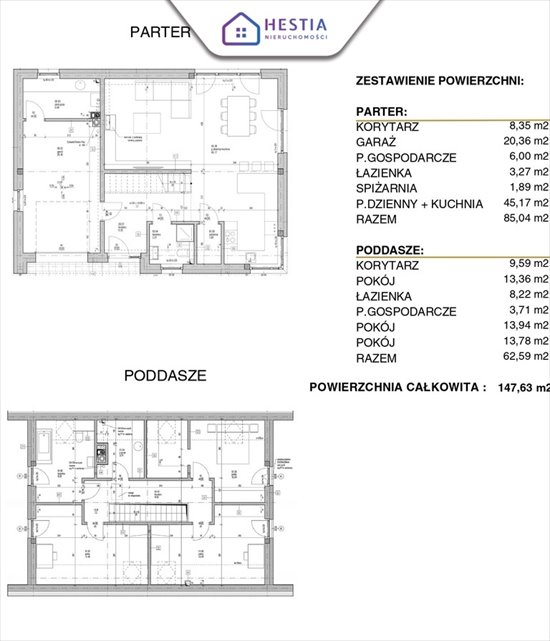 Nieruchomość o p.u. 147,63 m2 składa się z:
