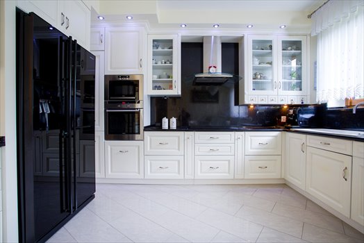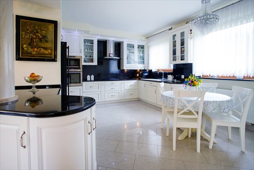 - Stylowa kuchnia z kamiennymi blatami.