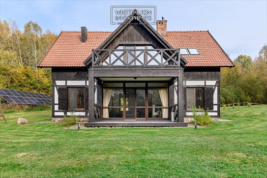 Elegancki, kameralny dom w stylu mazurskim o powierzchni 170 m² , położony na pięknej działce o powierzchni 1,7 ha .