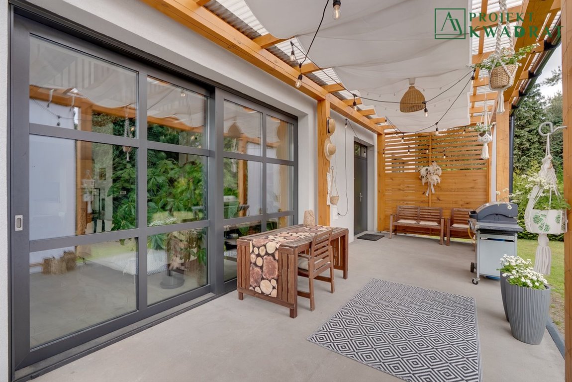 Pięknie zaaranżowany taras z miejscem do odpoczynku