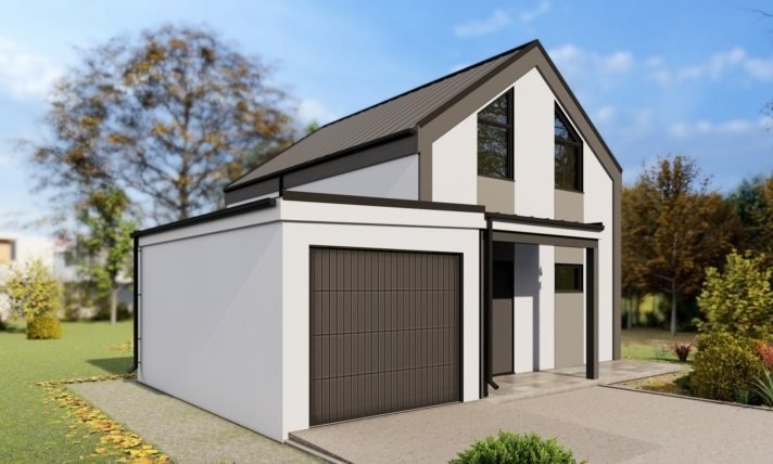 Powierzchnia domu: parter 60 m², antresola 30 m², garaż 17 m².