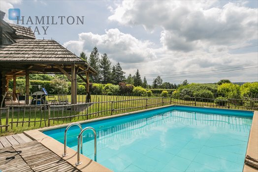 Budynek wykonany został z bali ze starannością o każdy detal co sprawia, że nieruchomość jest wyjątkowa. Każda przestrzeń domu została przemyślanie zagospodarowana. Na działce z widokiem na Babią Górę o wielkości 50 arów znajdziemy basen, oczko wodne, piękny ogródek, kurnik oraz pole do gry w piłkę nożną lub tennis ziemny. Kolejnym atutem jest szambo, które zostało umieszczone poza uczęszczaną działką. Zostały zamontowane również Solary PV - dzięki czemu można zaoszczędzić na ciepłej wodzie oraz ogrzewaniu, które jest gazowe.