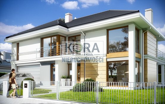 -> Piętra : korytarz, 4 sypialnie, 2 łazienki, garderoba, pralnia, schowek, balkon.