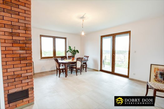 Parter: przestronny, widny salon z kominkiem i wyjściem na taras, kuchnia, łazienka, pokój gościnny,