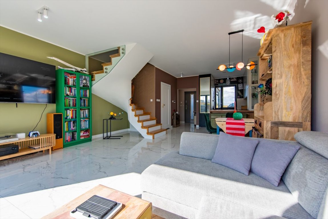 Dom został wykończony z wysokiej klasy materiałów i jest gotowy do zamieszkania. Budynek wyposażono w podłogowe ogrzewanie zasilane pompą ciepła, rekuperację, klimatyzację, wideodomofon, drzwi antywłamaniowe i trzy‑szybowe okna. Układ pomieszczeń jest funkcjonalny, a wnętrza są bardzo dobrze doświetlone.