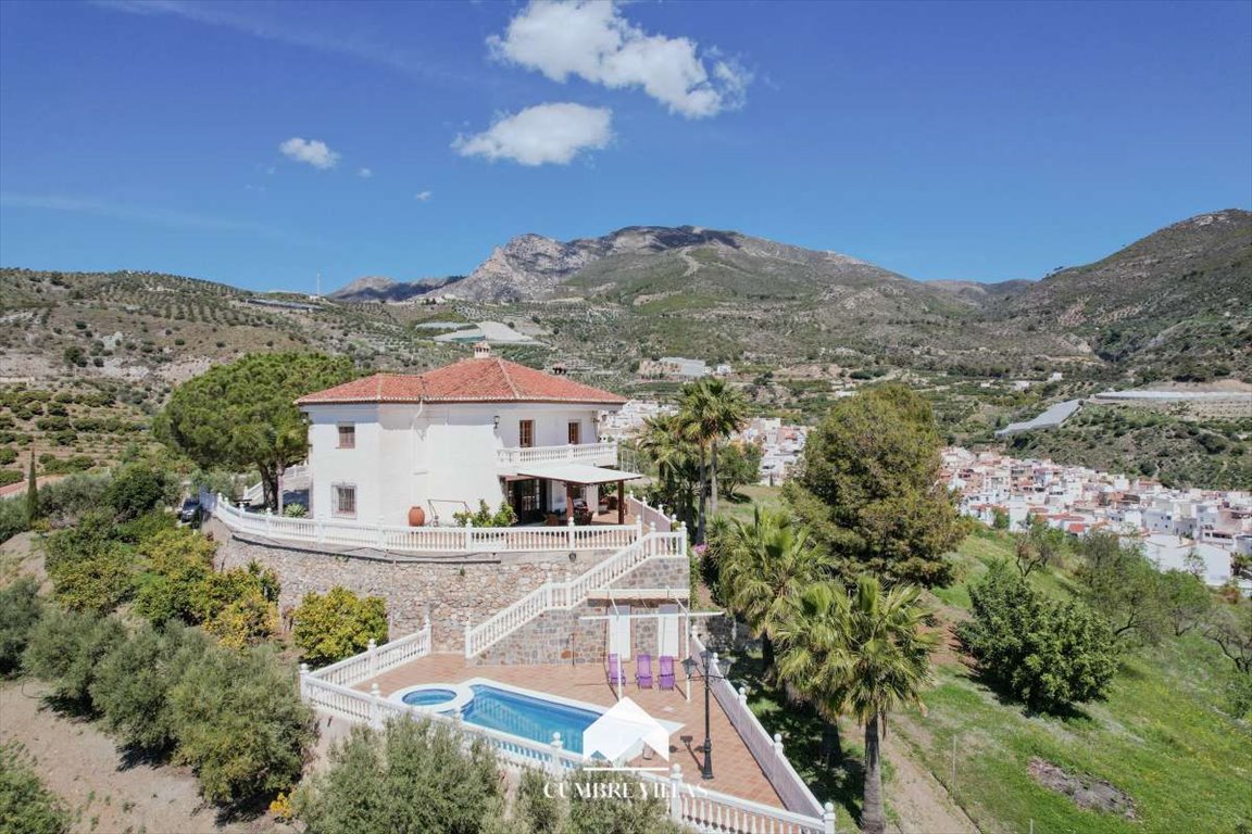 Cumbre Villas przedstawia tę niezwykłą posiadłość położoną na wsi w Ítrabo, w odległości krótkiego spaceru od wsi i około 25 minut od plaży. Ta przestronna wiejska willa, o estetyce dworu, położona jest na dużej działce, na której znajdują się plantacje oliwek, mango i awokado, i oferuje piękne widoki na góry i morze.Na parterze głównego budynku znajduje się duży salon z jadalnią i kominkiem oraz dostępem do głównego tarasu, kuchnia, sypialnia, łazienka i pralnia. Na piętrze znajdują się cztery sypialnie dwuosobowe, z których jedna ma łazienkę, oraz łazienka z wanną. Dom otoczony jest przestronnymi tarasami i balkonami, miejscem na grilla oraz solarium z dużym basenem i prysznicem.Obok domu znajduje się duży zbiornik wodny, wzmocniony i uszczelniony betonową płytą i pokryty wielospadowym dachem, przeznaczony do przekształcenia w apartamenty turystyczne. Znajduje się tu również duży taras z przestronnym garażem poniżej, w tym strefa rozrywki, toaleta, kuchnia, kominek i piwnica na wino. Otoczona polami i terenami rolniczymi, ta finca oferuje wyjątkowe naturalne położenie na Costa Tropical.Prosimy o kontakt z Cumbre Villas w celu uzyskania dalszych informacji lub umówienia się na oglądanie nieruchomości.