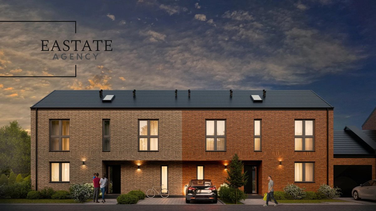 To starannie zaprojektowany koncept premium, w którym każdy z czterech domów wyróżnia indywidualny odcień elewacji z ręcznie formowanej cegły, tworząc elegancką i spójną architekturę.