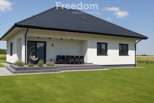 Na pierwszych dwóch zdjęciach widoczny jest dom wybudowany na podstawie tego samego projektu budowlanego w innej lokalizacji, w celu zwizualizowania docelowego wyglądu oferowanego domu.