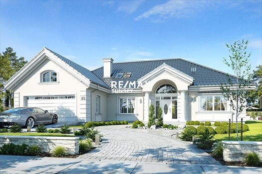 Budynek zaprojektowany został w eleganckim, klasycznym stylu z nowoczesnymi akcentami. Symetryczna bryła, wielospadowy dach pokryty ceramiczną dachówką, dopracowane elewacje oraz reprezentacyjne wejście główne nadają nieruchomości ponadczasowy i prestiżowy charakter. Projekt doskonale wpisuje się w zabudowę jednorodzinną i sprawia wrażenie solidnej, dopracowanej rezydencji.