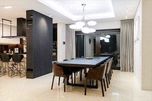 Dom o imponującej powierzchni 423 m² usytuowany na rozległej działce 10 000 m², co daje poczucie przestrzeni i prywatności. Na dolnej kondygnacji znajduje się kuchnia z jadalnią, przestronny salon, sypialnia z łazienką, garderoba, oddzielna toaleta oraz dwa pokoje gościnne z łazienką. Na pierwszą kondygnację prowadzą marmurowe schody i znajdują się tam trzy duże sypialnie, gabinet, łazienka z pralnią, pokój rekreacyjny z siłownią, stołem bilardowym oraz sauna z prysznicem.