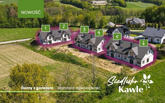Siedlisko Kawle to kompleks 6 domów w zabudowie bliźniaczej z garażami. Domy mają po 5 pokoi (parter: przestronna część dzienna z salonem i aneksem kuchennym, łazienką oraz kotłownią, na piętrze: 4 spore pokoje w tym główna sypialnia z garderobą, łazienka).