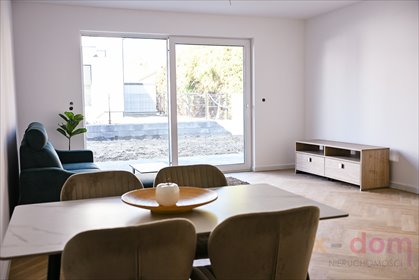 - przestronny i komfortowy salon z aneksem kuchennym (wyposażony w duże, przesuwne okno prowadzące do ogrodu, które zapewnia doskonałe doświetlenie i optycznie powiększa pomieszczenie)