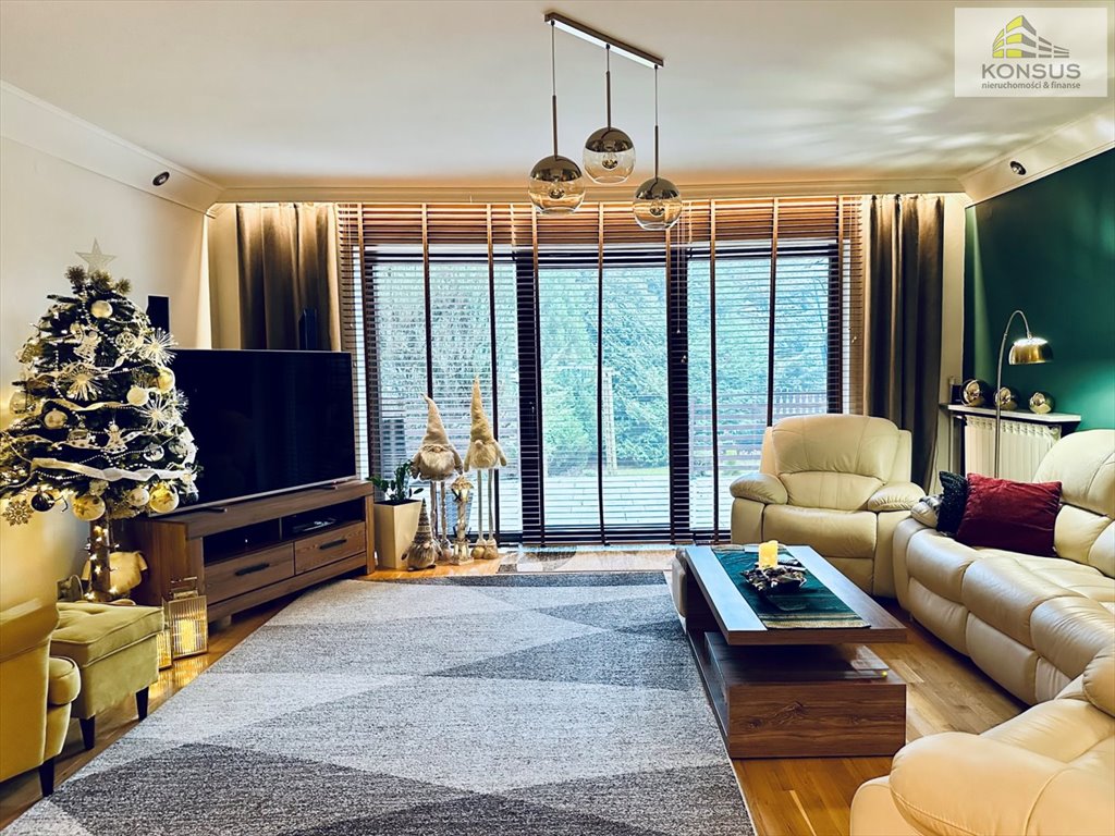 Na zewnątrz znajduje się duży taras , idealny do wypoczynku, oraz ogród obsadzony dojrzałymi drzewami, które zapewniają prywatność, cień i wyjątkowo przytulny klimat przez cały rok.