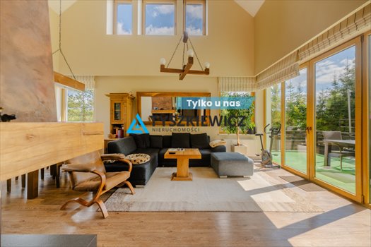 Dom położony jest na działce o powierzchni 1333 m2. Budynek został sprytnie wkomponowany w teren działki, dzięki czemu w strefie podpiwniczenia oprócz warsztatu i pomieszczeń gospodarczych wkomponowano garaż dwustanowiskowy. Na parterze mieści się przestronny salon z aneksem kuchennym, jadalnią i holem o łącznej "otwartej" powierzchni 56 m2. Dodatkowo na parterze mieści się pokój dla gości/gabinet oraz łazienka. Natomiast na poddaszu usytuowano trzy sypialnie i dużą łazienkę. Całość została gustownie wykończona elementami z dębowego drewna, dębowe drzwi wewnętrzne i schody, co nadaje pomieszczeniom uniwersalnej elegancji a wraz z kominkiem zlokalizowanym w centralnej części salonu tworzy przytulny klimat. Budynek ogrzewany wysokiej klasy piecem (na pelet) firmy "Heiztechnik".